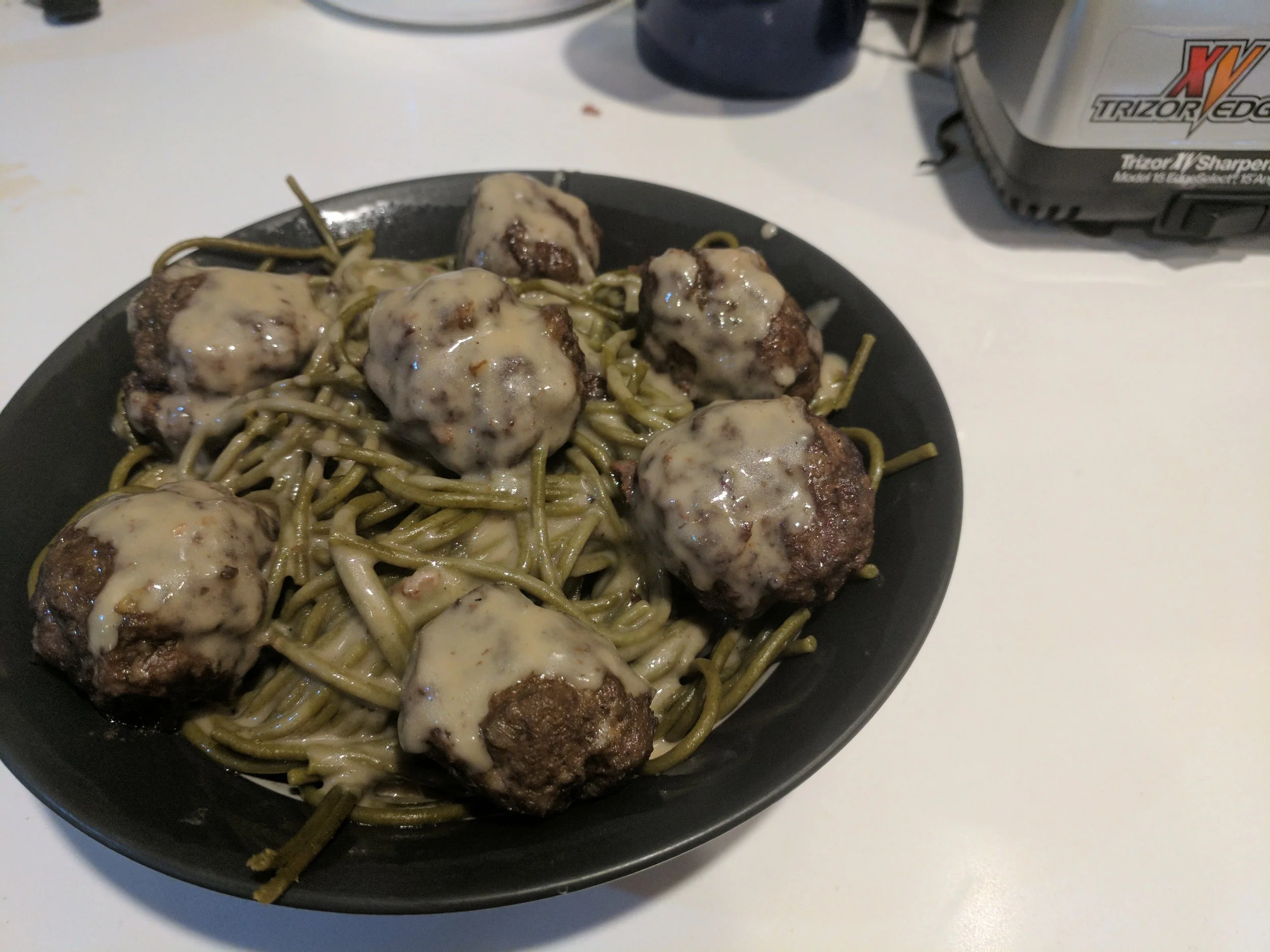 I was trying to put together dinner the other night and I realized I needed to use up 2lbs of ground beef that wasn't much longer for this world. I was running low on veggies and I recalled I had Ronzoni Super Green noodles in the cabinet. After some more research I decided to try my hand at Swedish meatballs! I used a recipe by Alton Brown as my base - I highly recommend doubling the sauce portion of the recipe. It might seem like a lot of sauce but it won't go to waste! I also used plain old unsalted butter in lieu of the clarified version. The combo of the sauce with the Super Green thin spaghetti was AMAZING! I can't recommend this recipe highly enough. Give it a try and let me know how it goes!